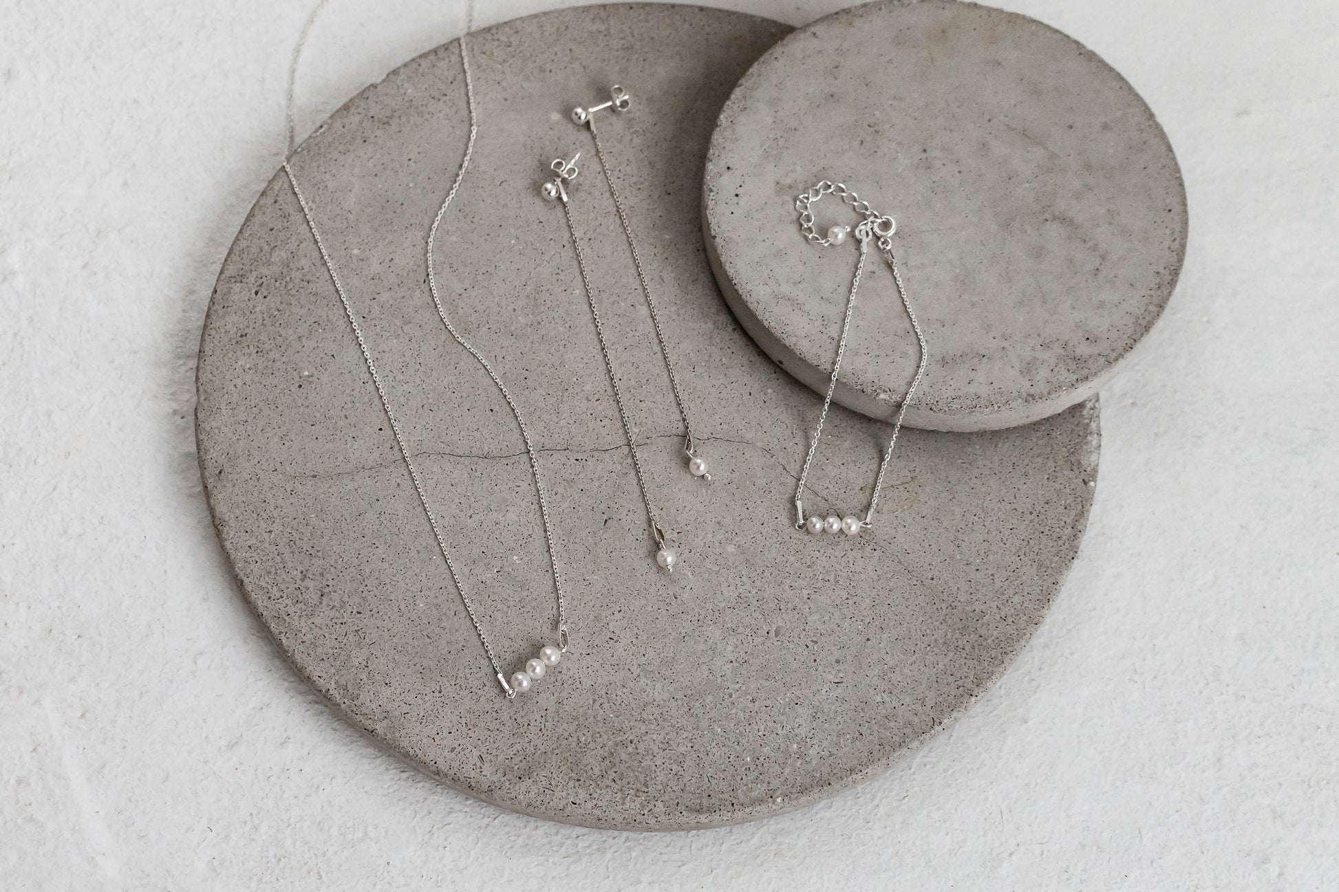 Šioje kolekcijoje juntamas estetinio jautrumo mišinys, kurį papildo aiškios geometrinės ir architektūrinės formos. Minimali grafinė linija ir gėlavandeniai perlai sukuria vientisą, harmoningą visumą.