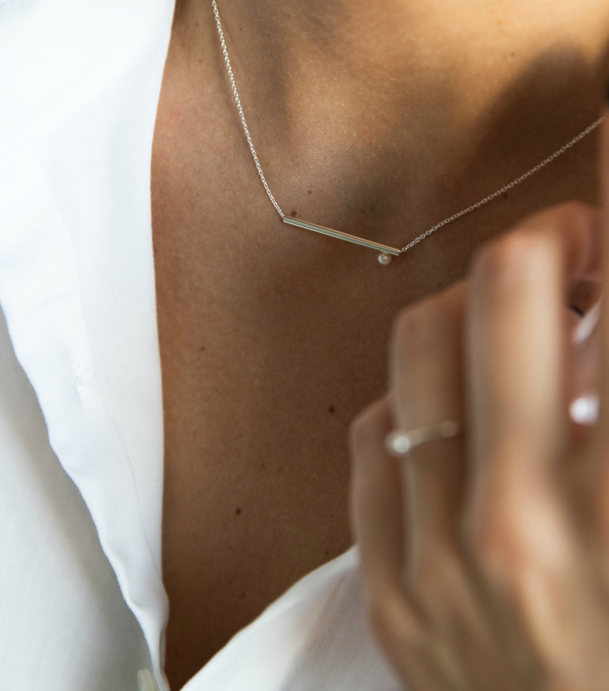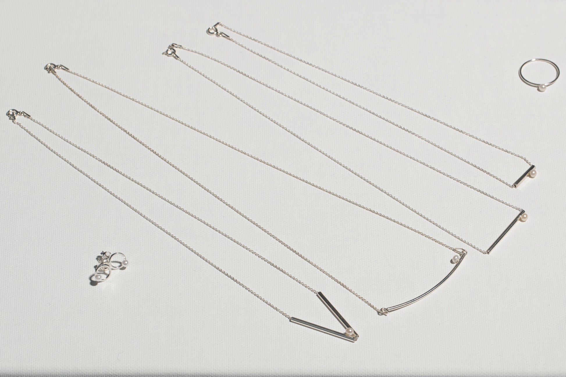 Šioje kolekcijoje juntamas estetinio jautrumo mišinys, kurį papildo aiškios geometrinės ir architektūrinės formos. Minimali grafinė linija ir gėlavandeniai perlai sukuria vientisą, harmoningą visumą.