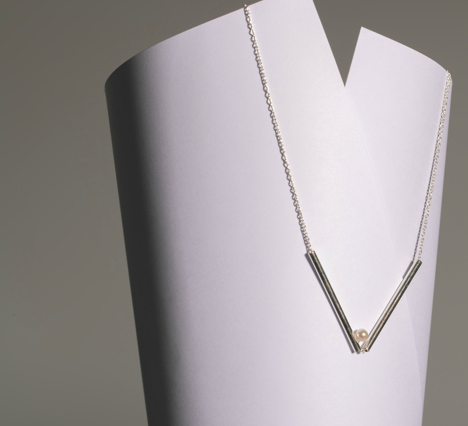 Šioje kolekcijoje juntamas estetinio jautrumo mišinys, kurį papildo aiškios geometrinės ir architektūrinės formos. Minimali grafinė linija ir gėlavandeniai perlai sukuria vientisą, harmoningą visumą.