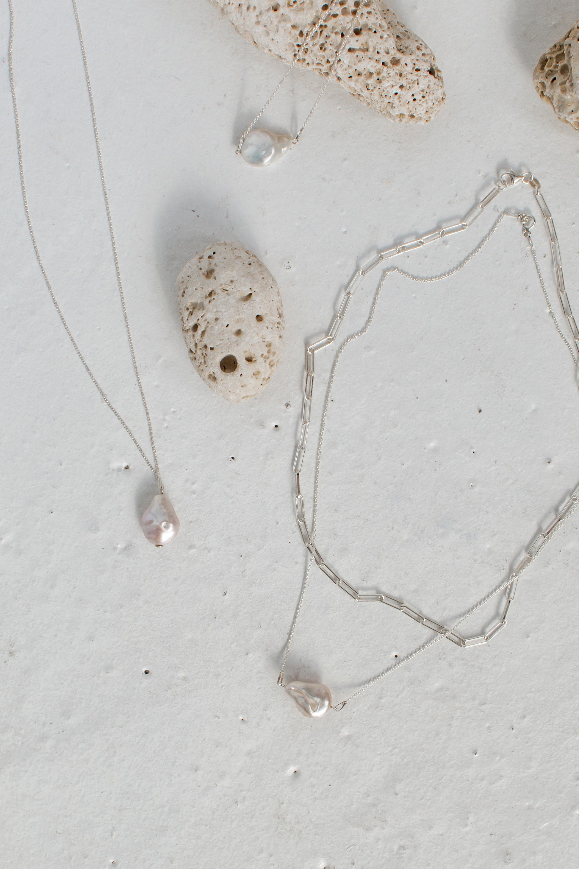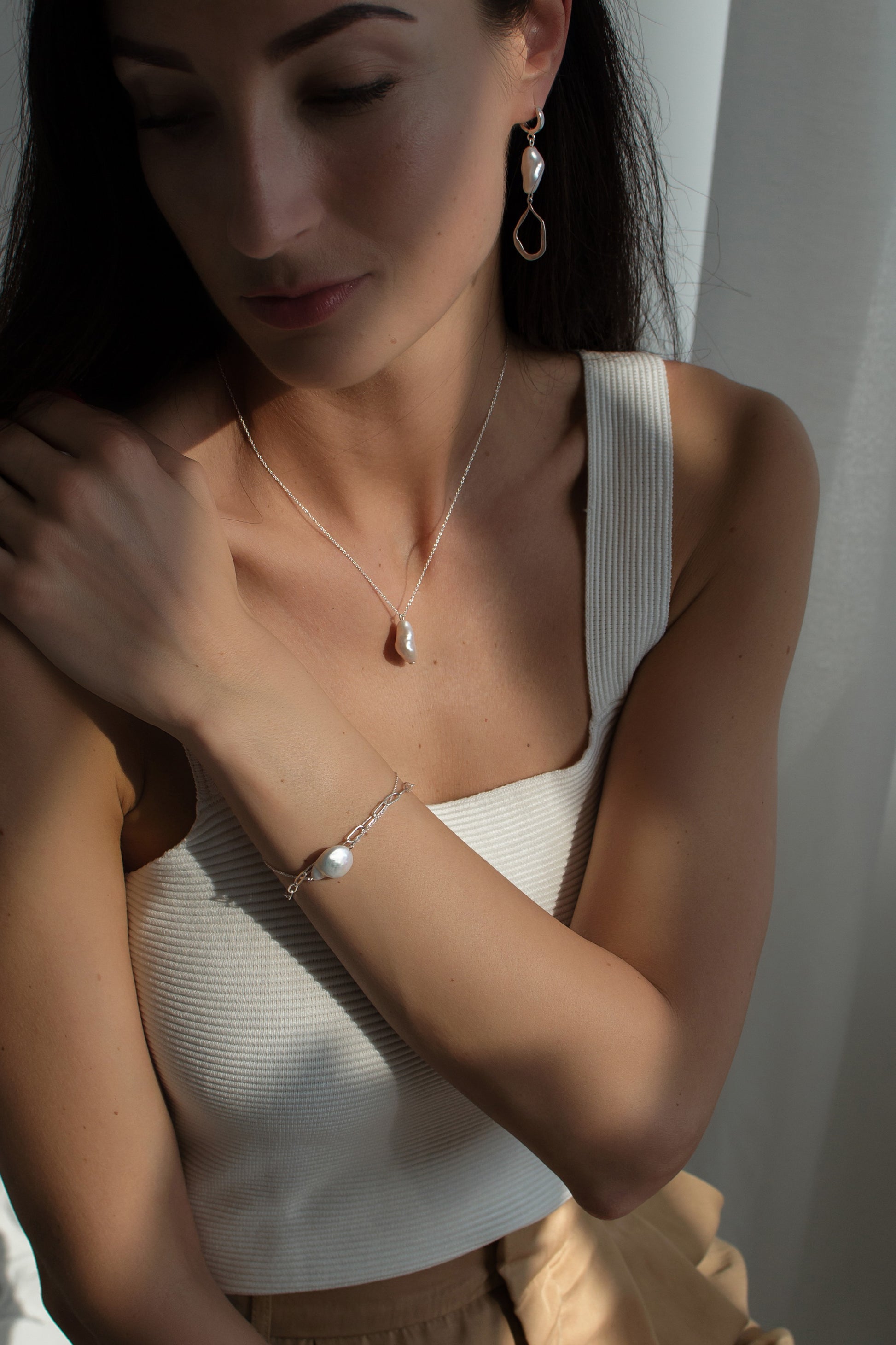 Šioje kolekcijoje juntamas estetinio jautrumo mišinys, kurį papildo aiškios geometrinės ir architektūrinės formos. Minimali grafinė linija ir gėlavandeniai perlai sukuria vientisą, harmoningą visumą.