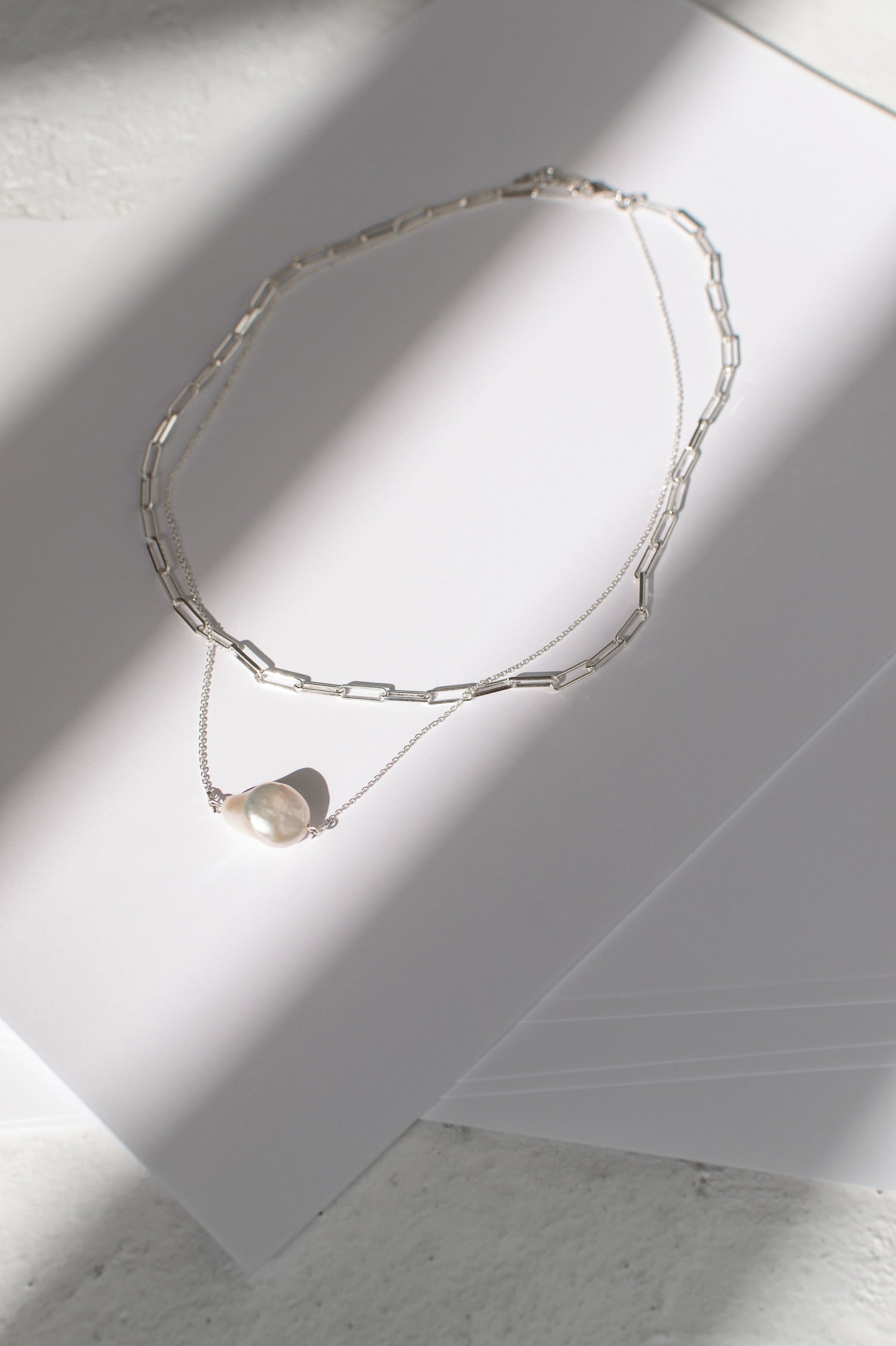 Šioje kolekcijoje juntamas estetinio jautrumo mišinys, kurį papildo aiškios geometrinės ir architektūrinės formos. Minimali grafinė linija ir gėlavandeniai perlai sukuria vientisą, harmoningą visumą.