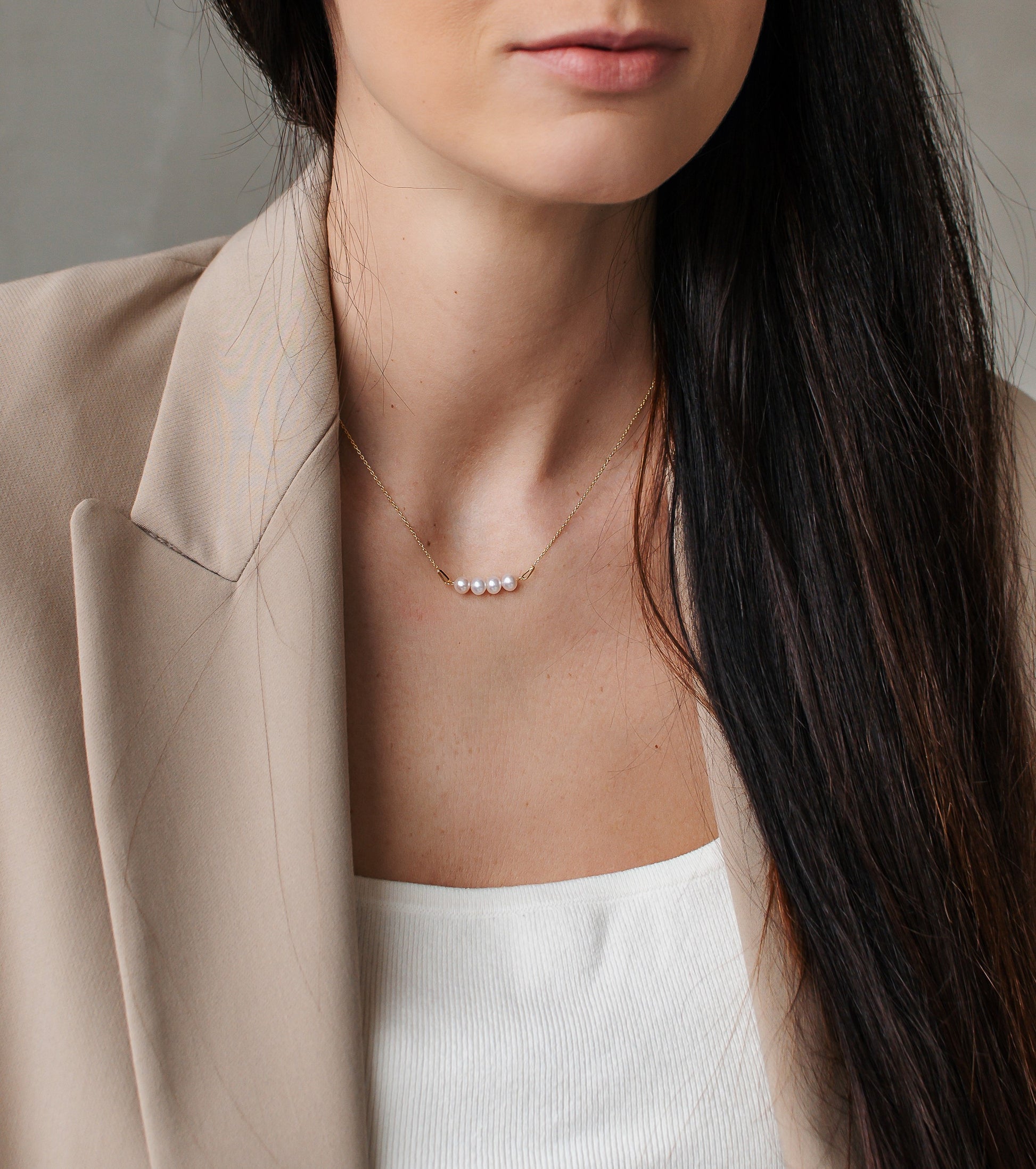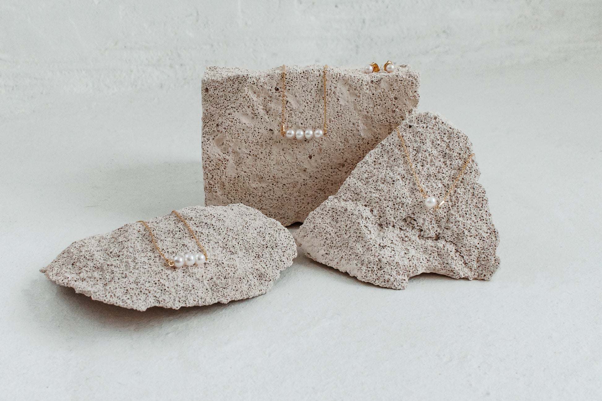 Šioje kolekcijoje juntamas estetinio jautrumo mišinys, kurį papildo aiškios geometrinės ir architektūrinės formos. Minimali grafinė linija ir gėlavandeniai perlai sukuria vientisą, harmoningą visumą.
