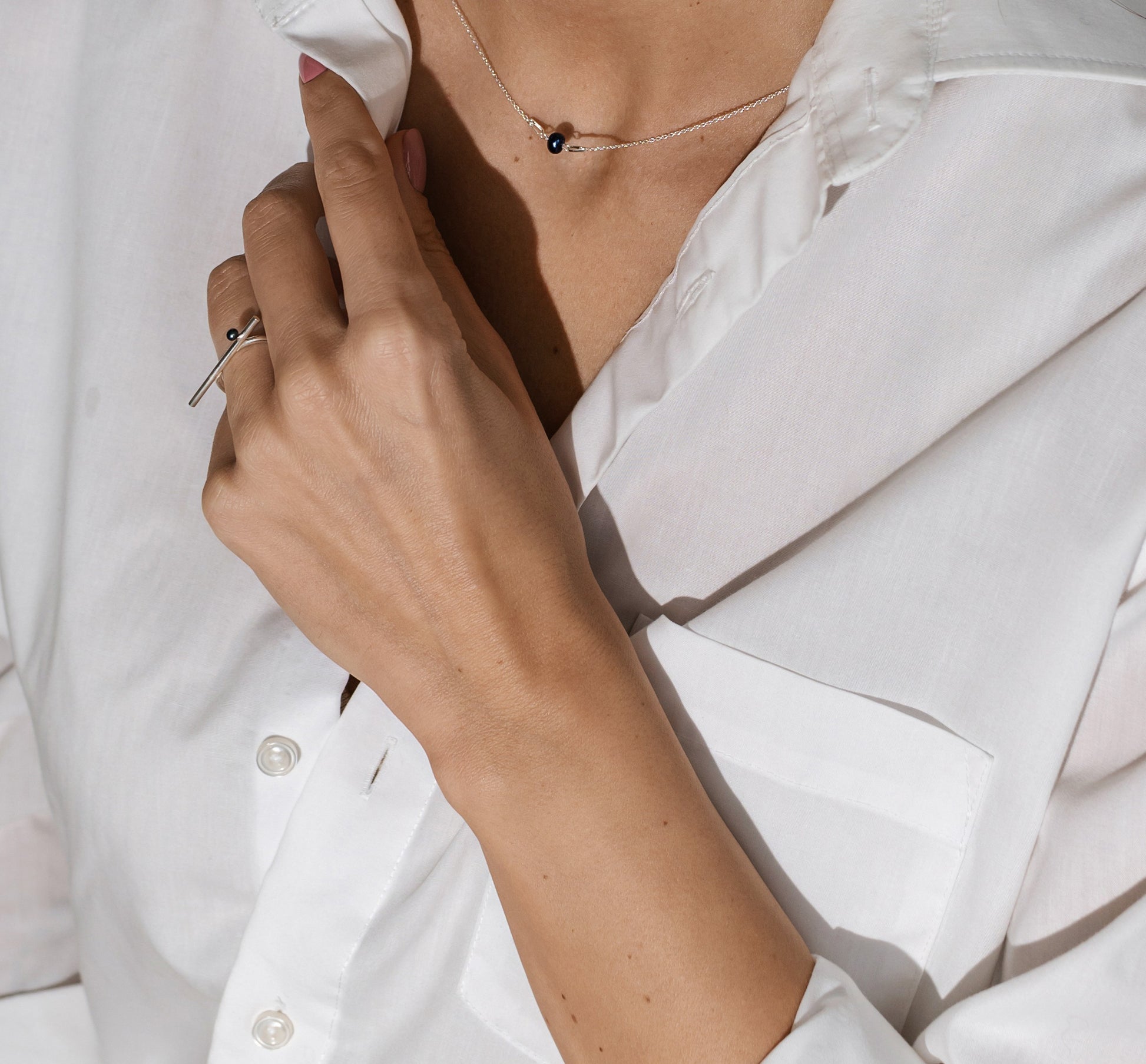 Šioje kolekcijoje juntamas estetinio jautrumo mišinys, kurį papildo aiškios geometrinės ir architektūrinės formos. Minimali grafinė linija ir gėlavandeniai perlai sukuria vientisą, harmoningą visumą.